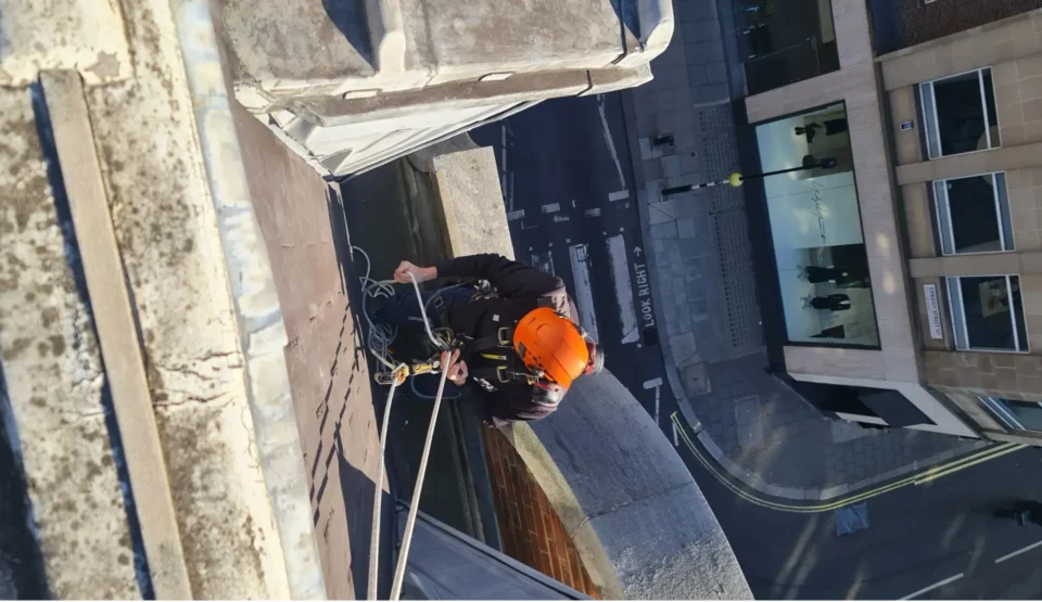 High Standard Rope Access Ltd’s abseiling services provide any guttering, down-pipe, and soil-pipe repair, installation, or reinforcement and high-level gutter cleaning projects via rope access safely, efficiently, and cost-effectively.